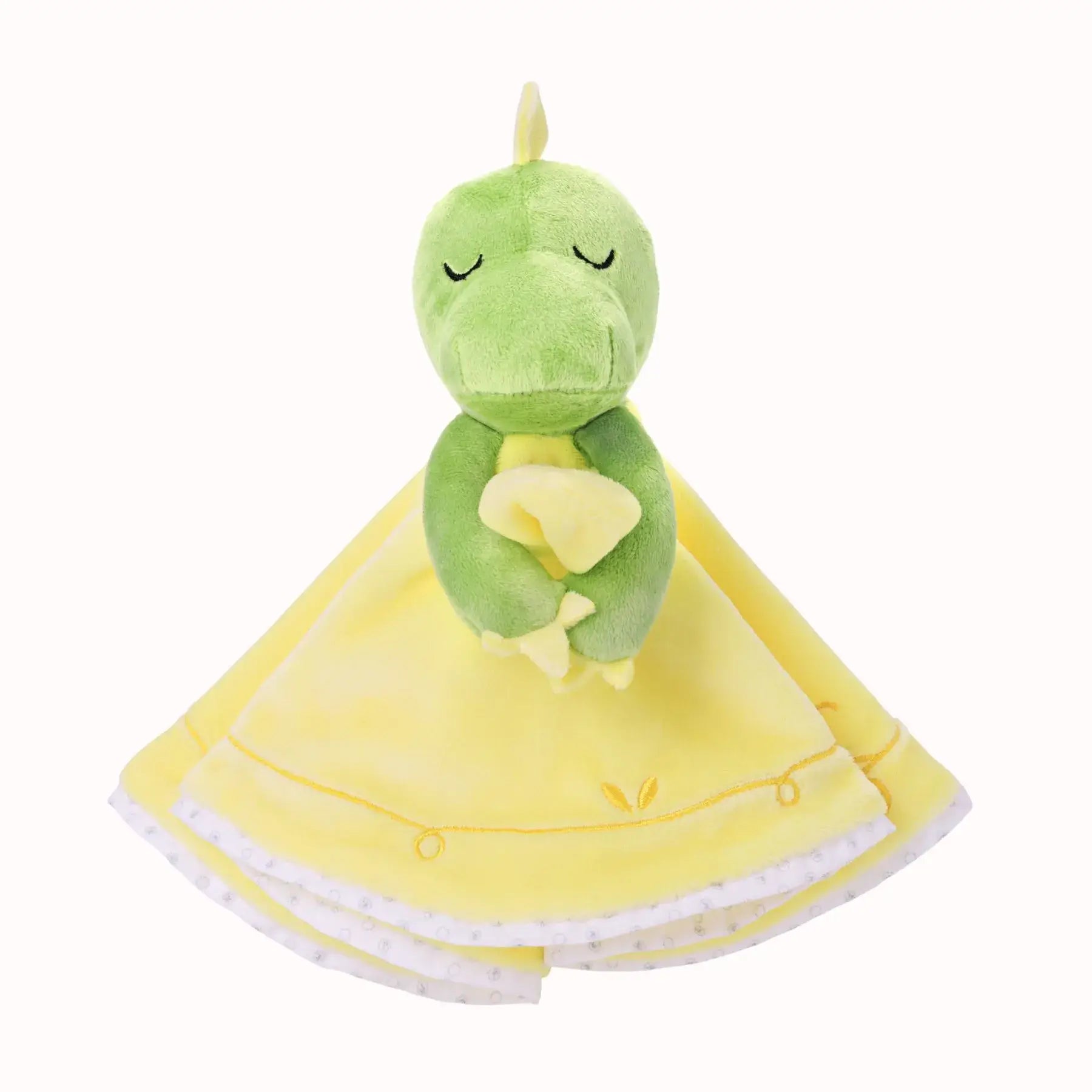 Behold, the ultimate security blanket for your baby boy - a green, adorable dinosaur complete with a vibrant yellow blanket! This snuggly blanket is a roaring good time for your little one, providing warmth and comfort at all times. The long arms of the dinosaur make it easy for your baby to grip and hold onto, adding to the overall sense of security. The charming yellow color adds a pop of style, making this security blanket a true standout. It's like having a prehistoric pal to cuddle up with, transporting your baby to a world of imagination and wonder. Made with only the softest materials that are gentle on your baby's delicate skin, this security blanket is sure to become your baby's new favorite companion.