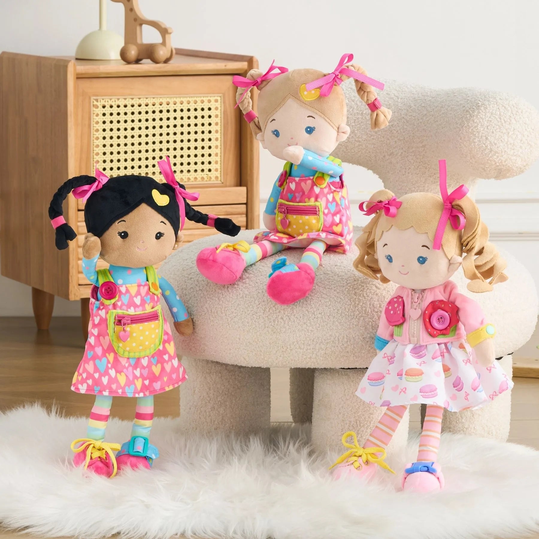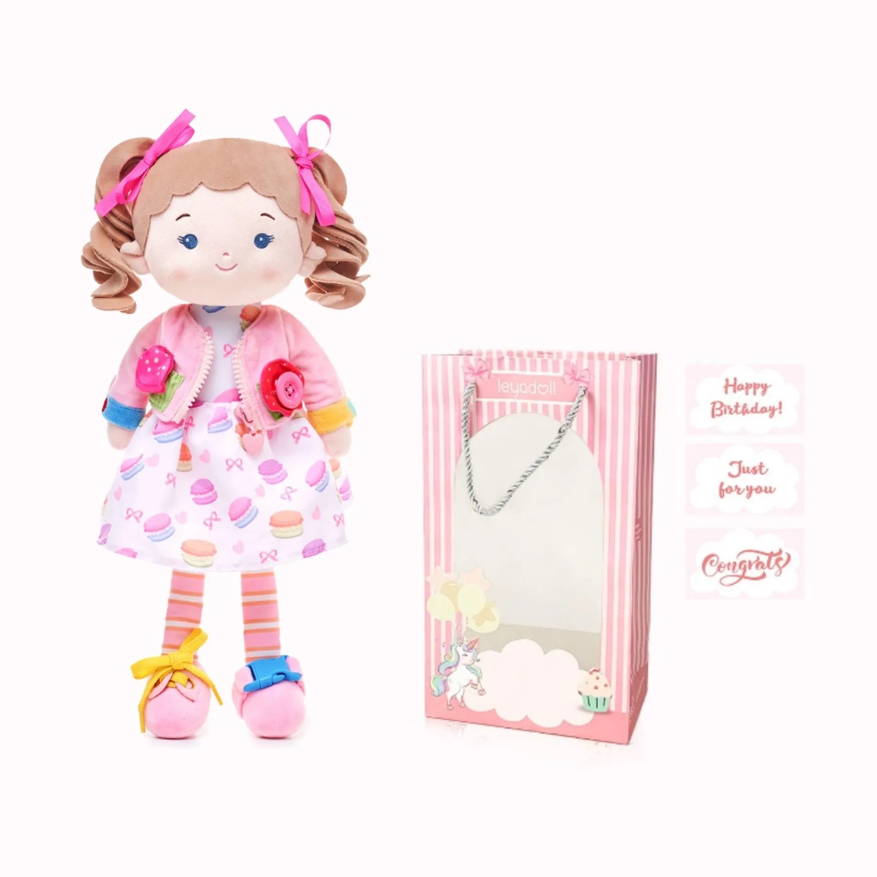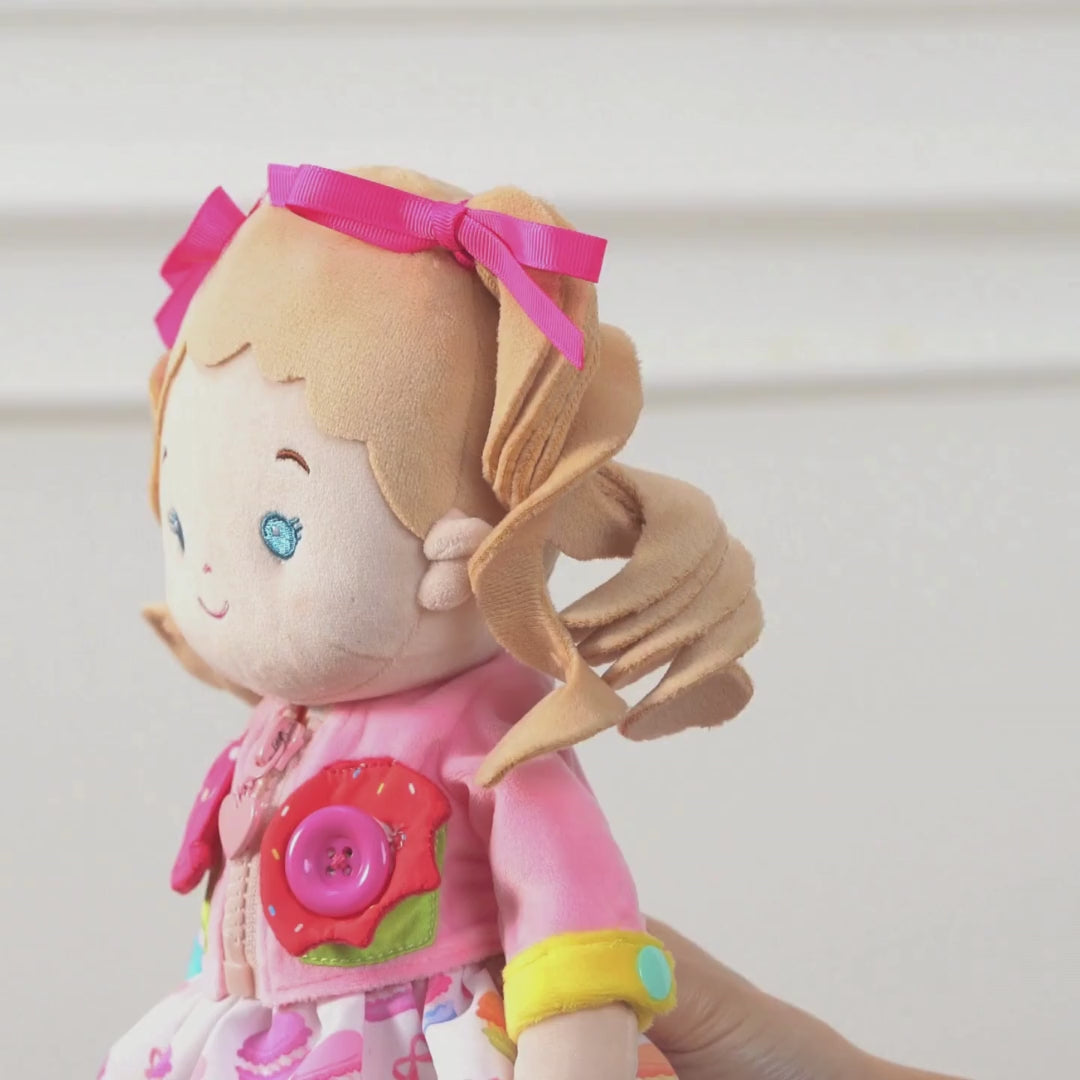 Our birthday girl loves her new doll! She’s so curious and loves to play with the zippers and buttons on our clothes and now she has her own!