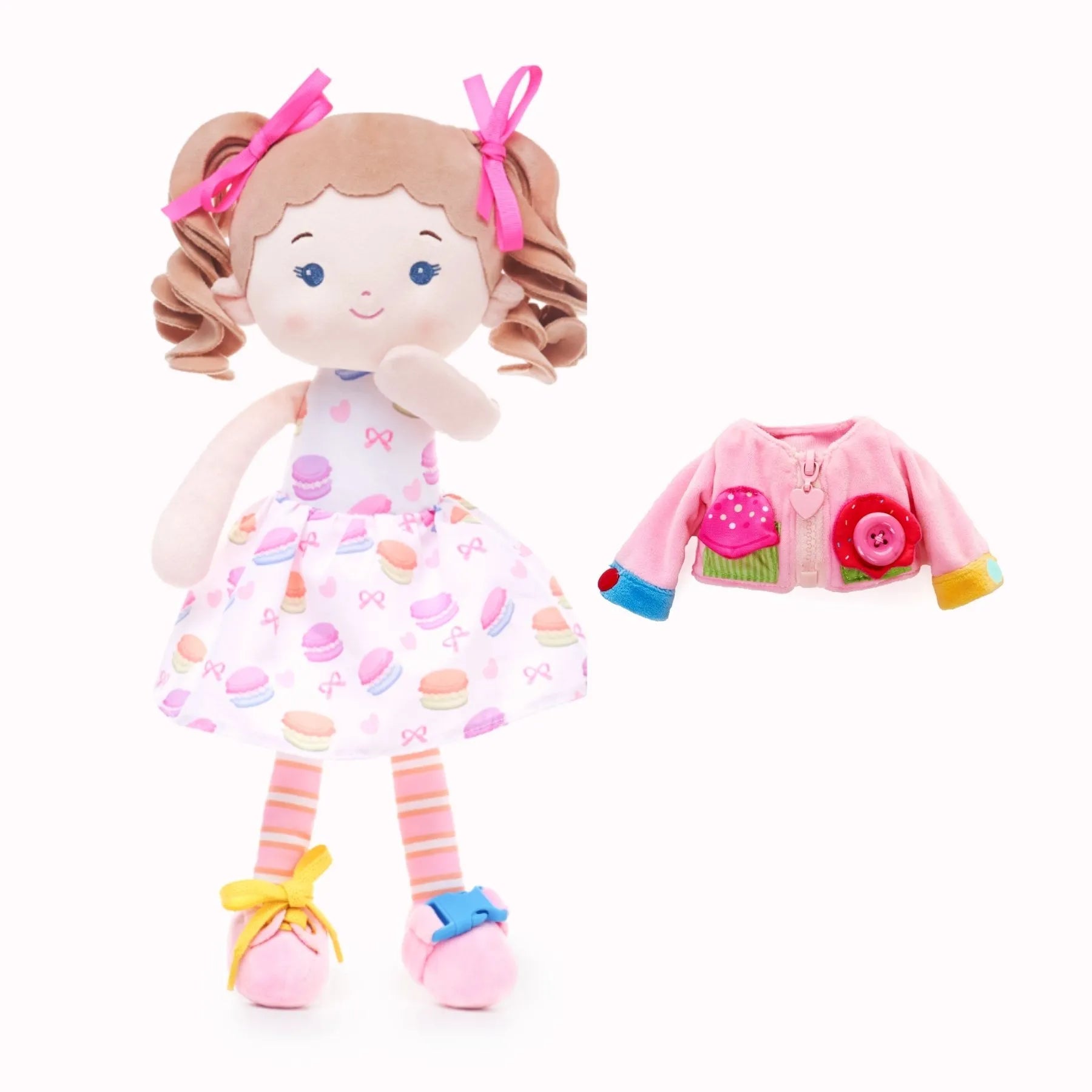 The doll is absolutely adorable. The cupcakes are so sweet. My granddaughter loves her to hug.