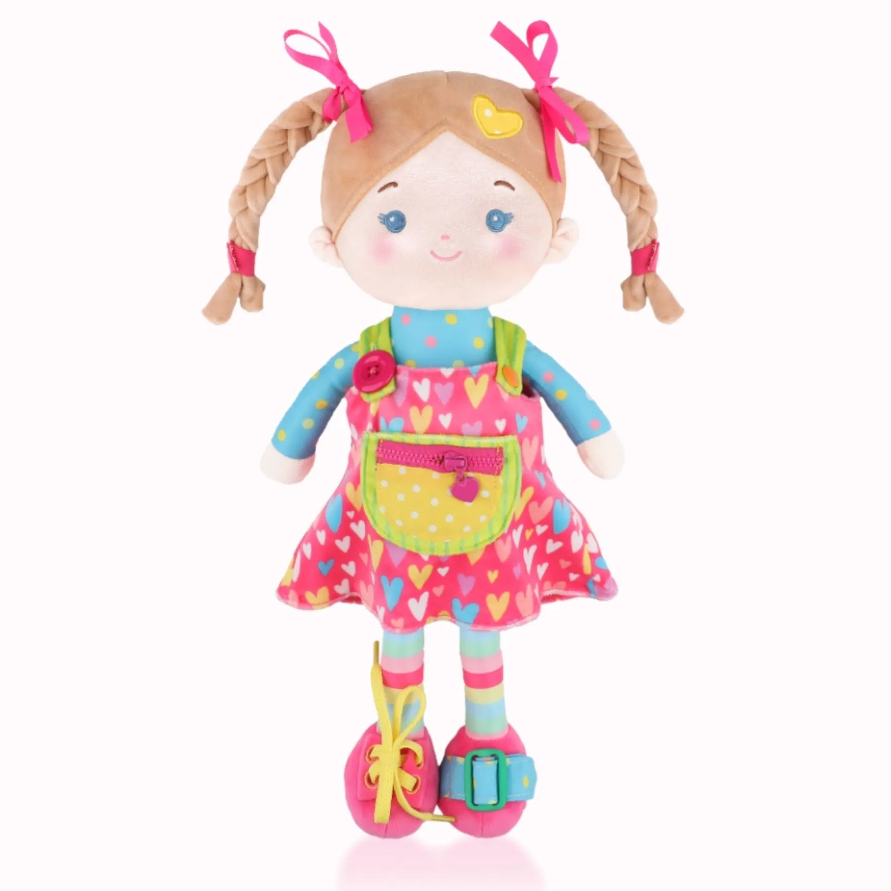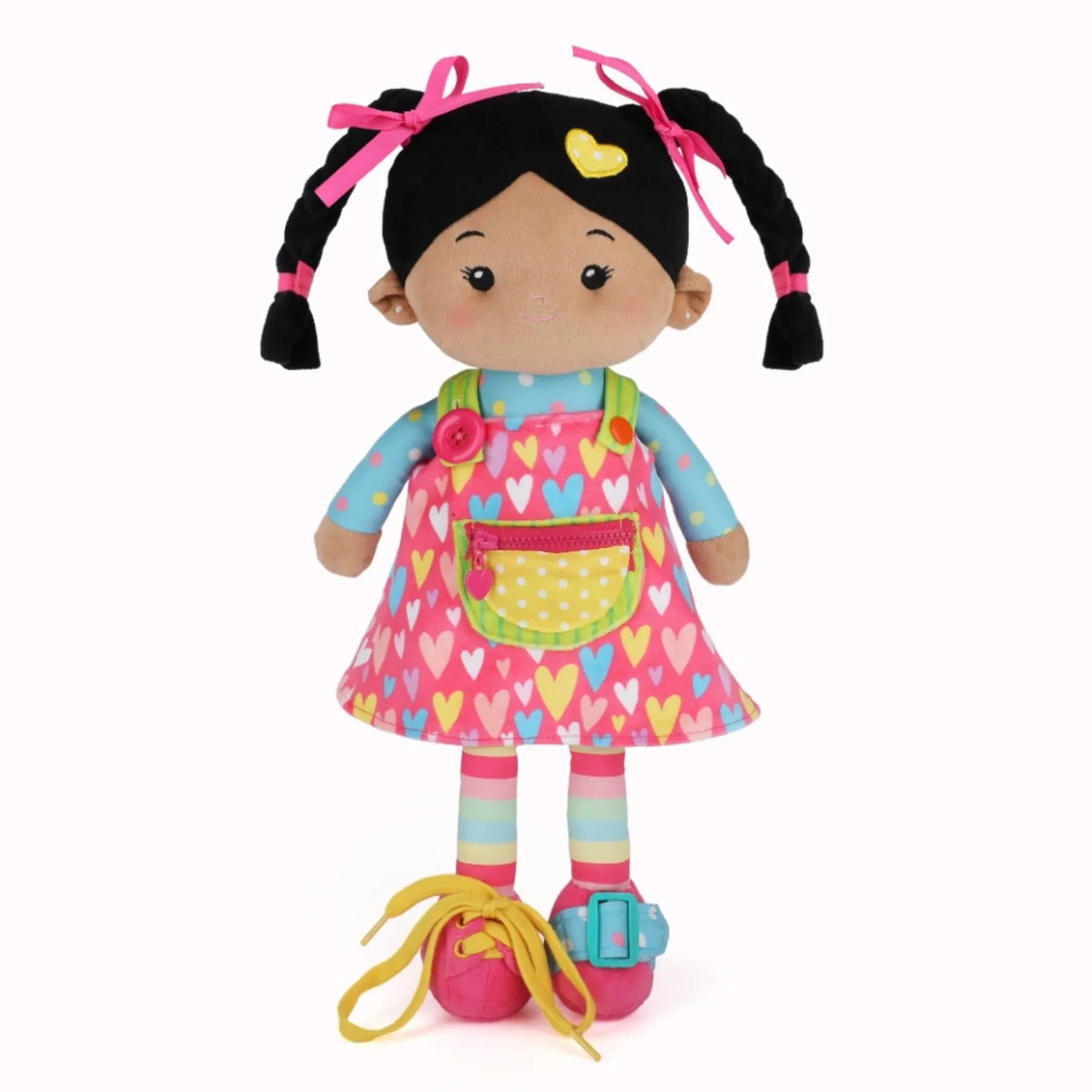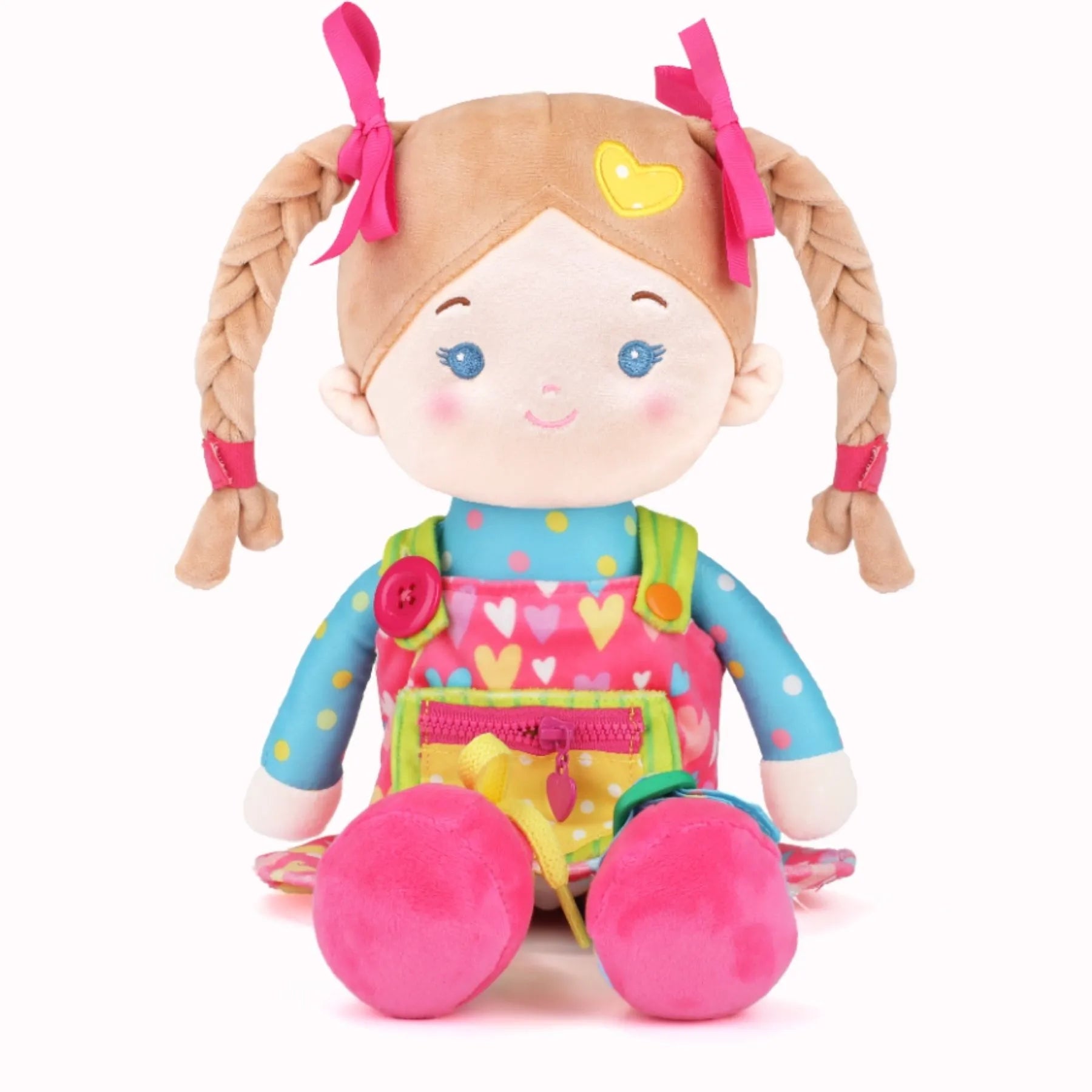 Doll is beautiful, my granddaughter will love her, I'll be able to teach her how to braid, buttons zipper. A perfect learning doll that she'll love learning/playing with. Her personalized name is another helpful addition to teach her name. I love it!!