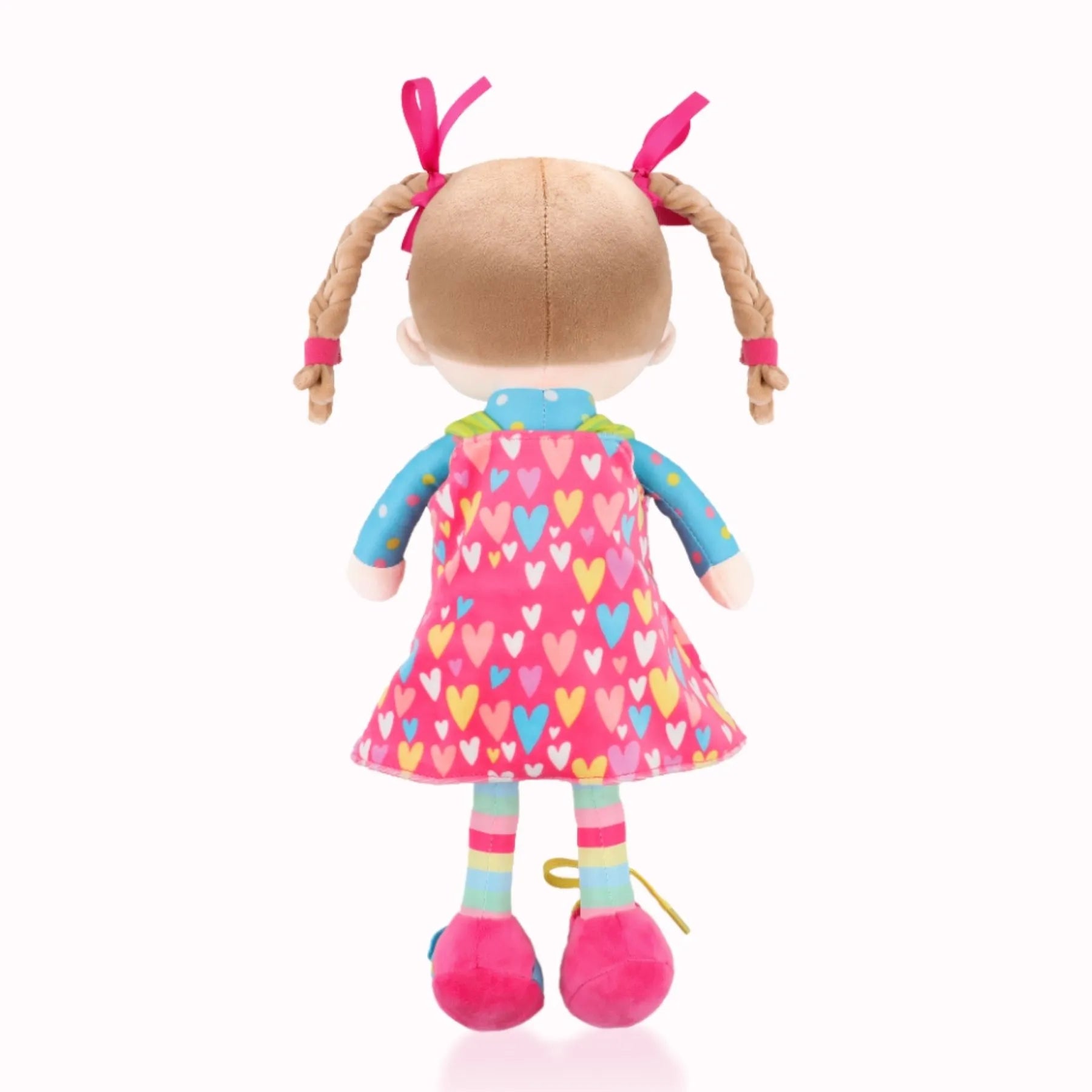 Beautifully made, gorgeous colours and very soft. Perfect for my granddaughter and she loves her. She will kiss and hug her which is so beautiful to watch. So pleased with design and quality