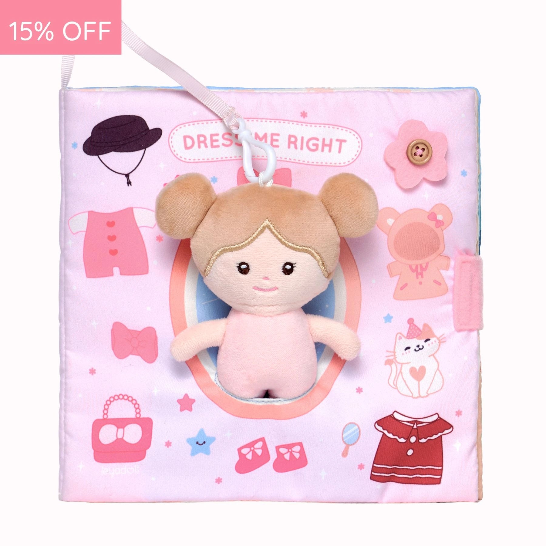 • Livre en Tissu (19 cm × 19 cm, 2,54-5,08 cm d'épaisseur selon le contenu et les activités) avec une Little Leyadoll (12 cm de haut) détachable.