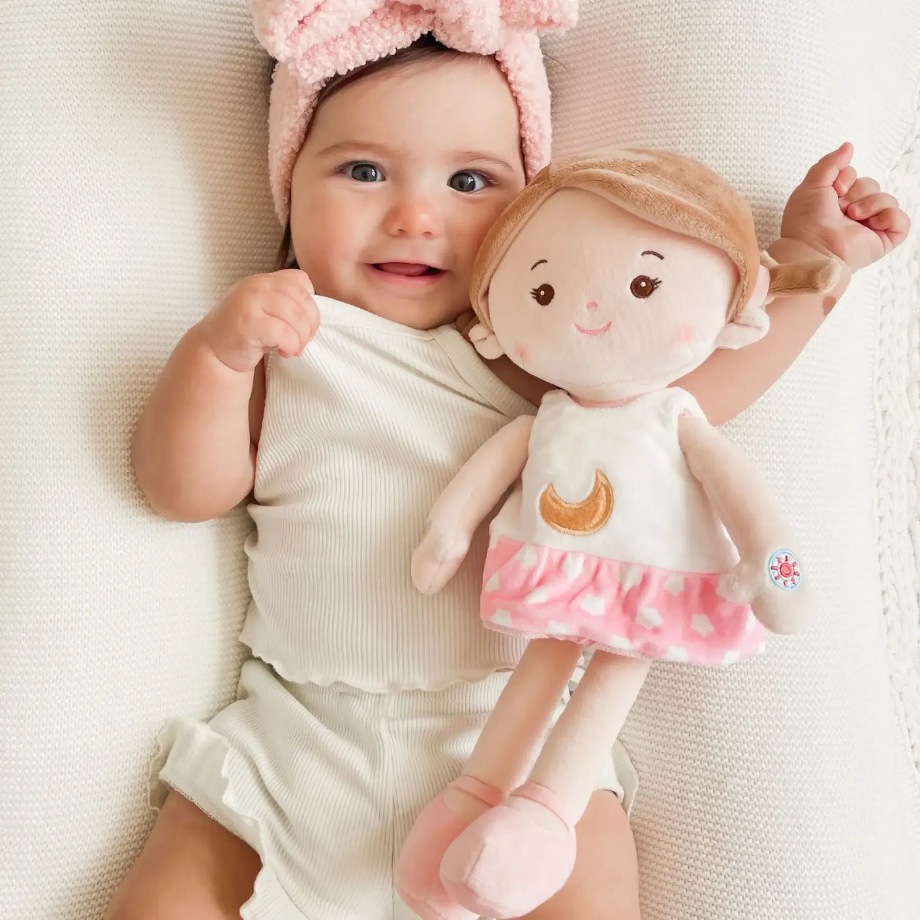 My granddaughter loves her new baby!!! She just became a big sister at the ripe old age of one and 16 days old!!! So I got her this soft and musical babydoll. She carries it around everywhere she goes. She knows how to push the buttons on the dolls arms to make it talk or sing. I highly recommend any of these well made and super soft dolls.